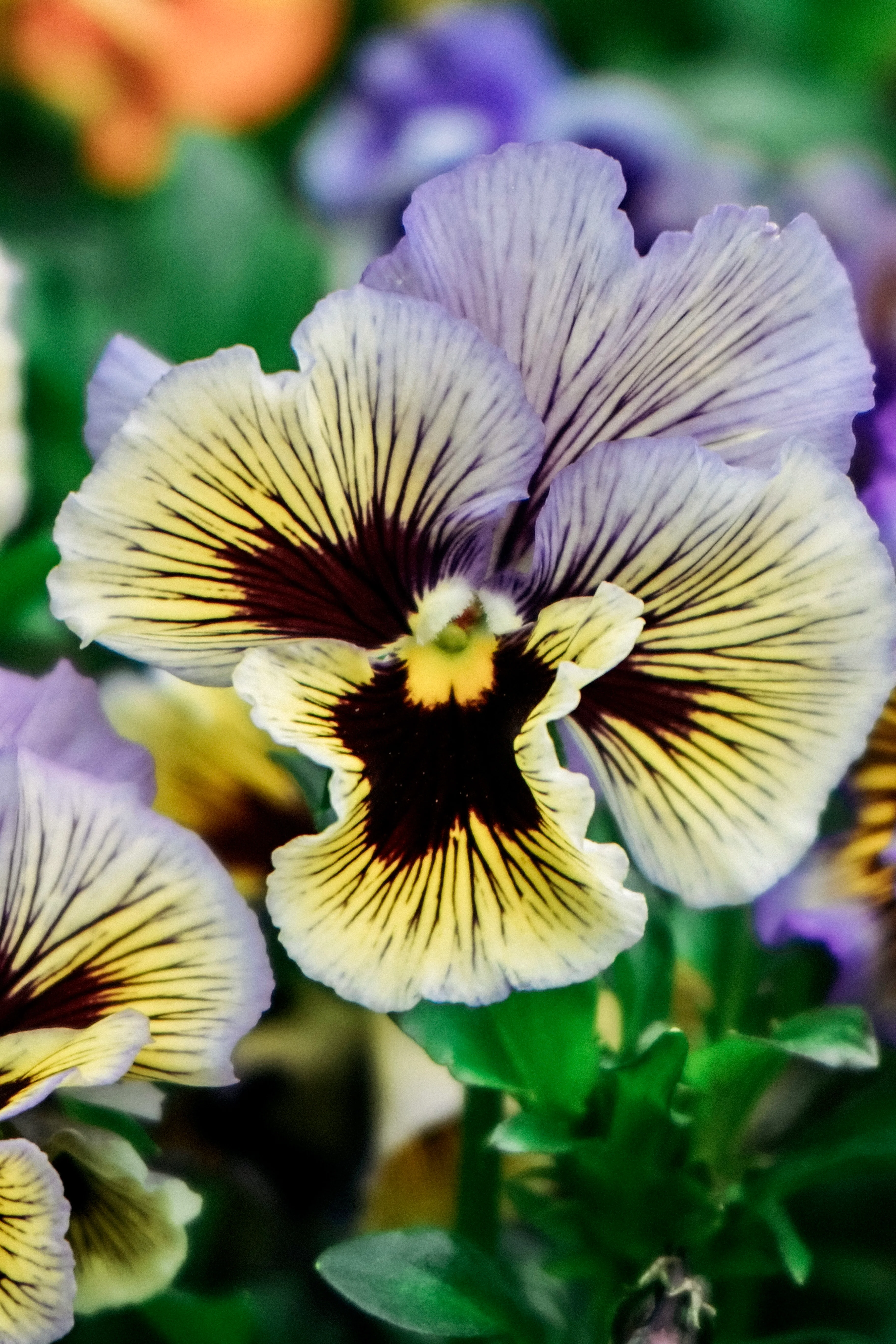Viola wittrockiana 'frizzle sizzle yellow/blue swirl'
